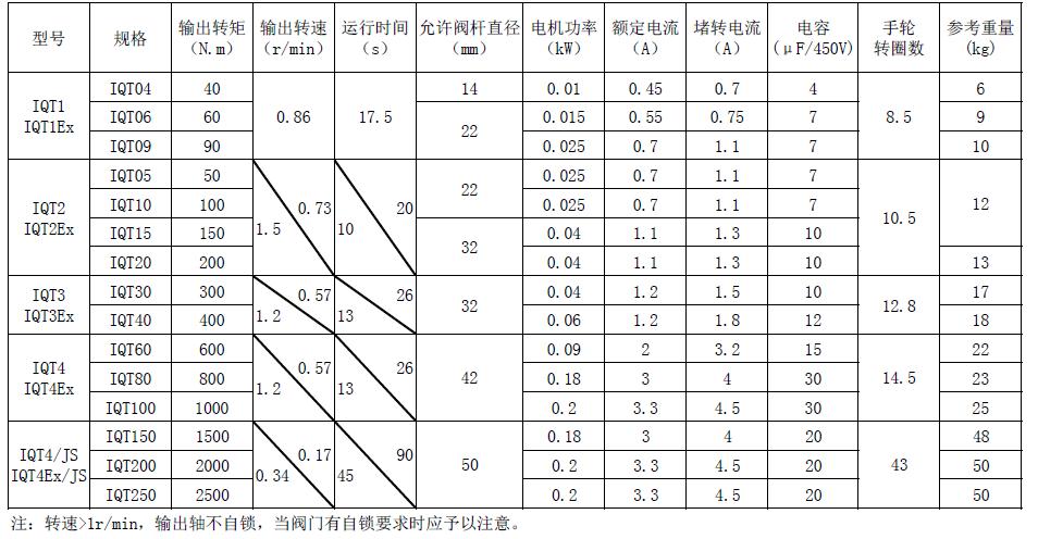 IQT1~IQT4/JS(220V單相電機)系列技術參數(shù)表