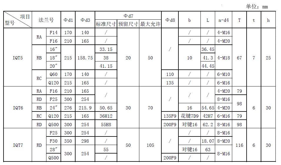 IQT5~I(xiàn)QT7系列技術(shù)參數(shù)表