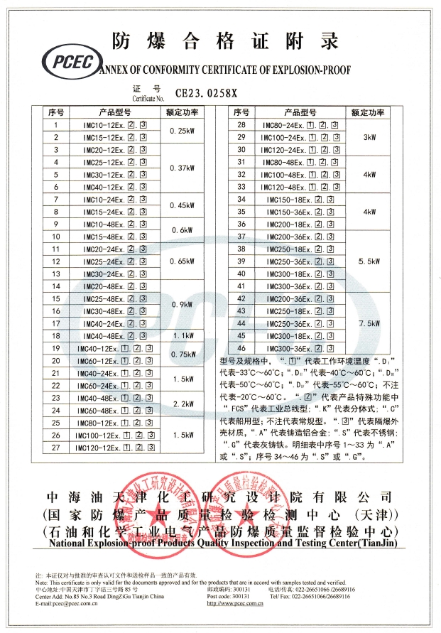 IMC標(biāo)準(zhǔn)技術(shù)參數(shù)表