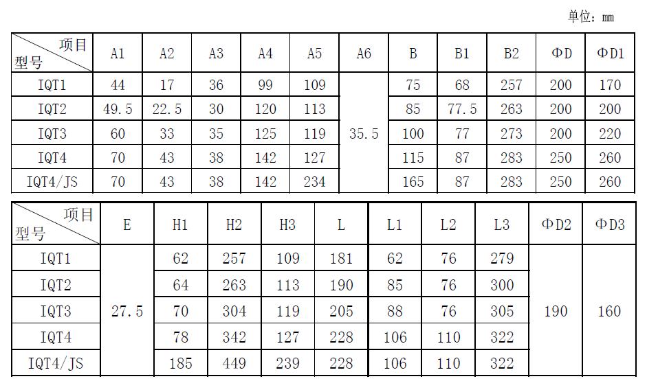 IQT1~IQT4系列法蘭連接尺寸IQT4/JS系列法蘭連接尺寸