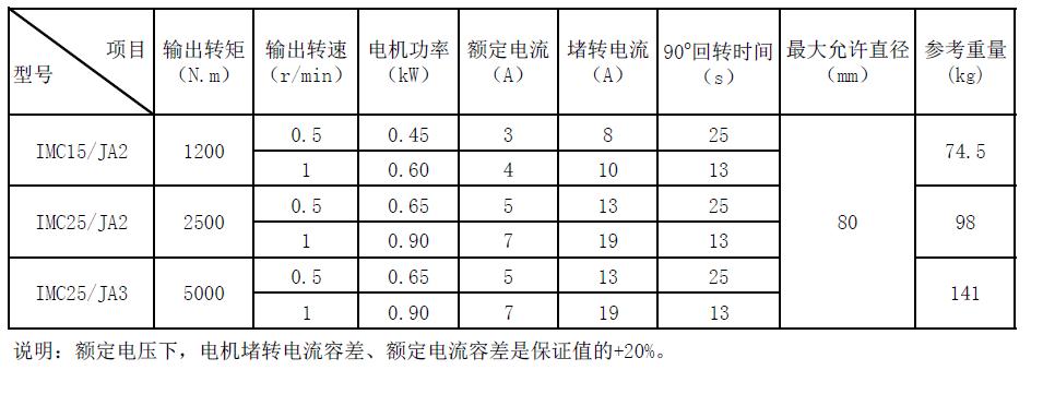 IMC/JA系列技術(shù)參數(shù)表