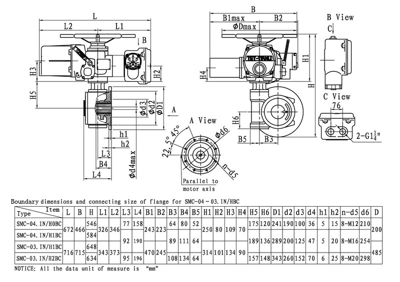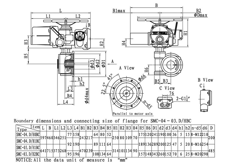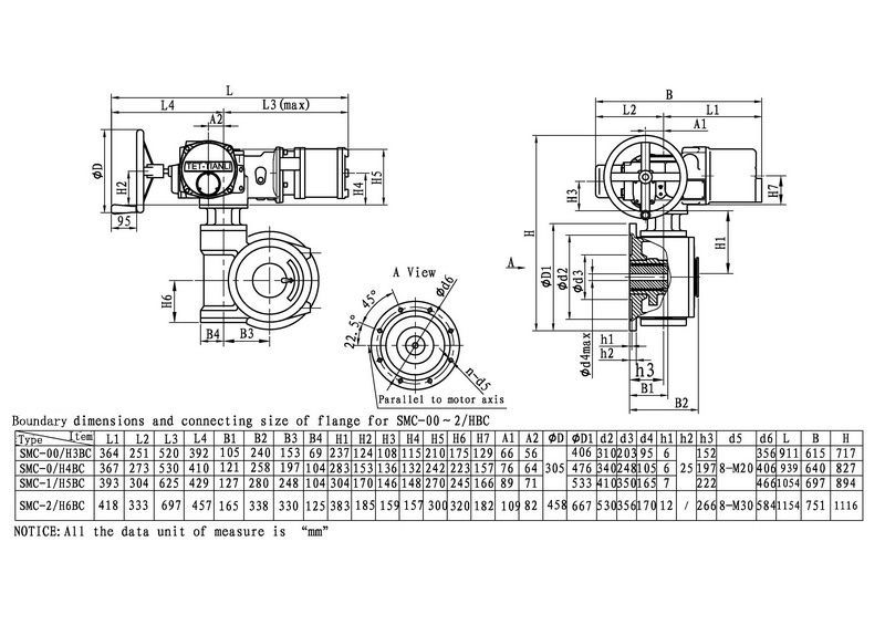 SMC/HBC series ,the combination of SMC series muilt-turn electric actuators and HBC worm speed reducer , was used to control ball valve ,butterfly valve and other part-turn valve actuators. This series actuators have features as firm structure, multiple standard, large torque rang, stable output and self-locking ability. In order to set up with the valve stem, HBC has a involute stem nut.. It is easy to test and adjust.
