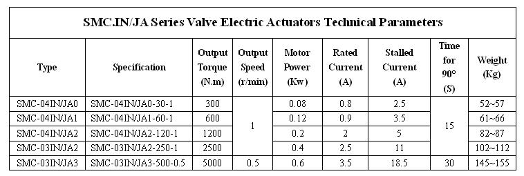 SMC/JA ,part-turn valve electric actuators , are used in ball valve,butterfly valve and motorized air dampers. This seris is always consist of SMC multi-turn electric actuator and JA part-turn speed reducer.The conditions of temperature numidity,elevation and level of protection are up to SMC standard