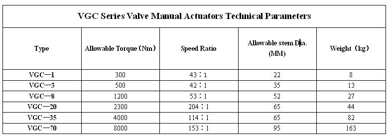 VGC series valve manual device is a 90 º-turn valve actuators.Mainly suitable for butterfly valves, ball valves, plug valves and other types of valves.Please when ordering when users need to connect the form and dimensions of the sample outside, I will meet your requirements.