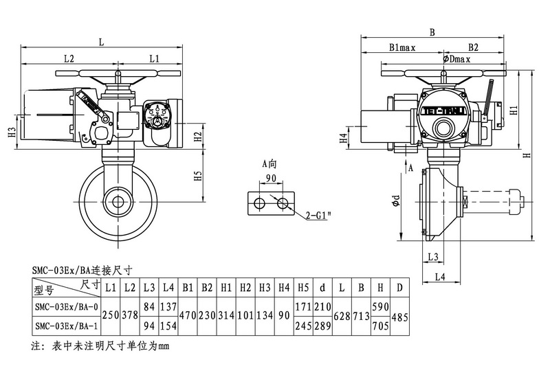 SMC/BA系列電動裝置是SMC系列中小轉(zhuǎn)矩多回轉(zhuǎn)電動裝置與BA圓錐齒輪減速器的一種組合型式,它適合閘閥、截止閥等多回轉(zhuǎn)閥門的驅(qū)動控制。SMC/BA電動裝置具有以下特點:以較小轉(zhuǎn)矩規(guī)格的SMC電動裝置與BA減速器組合可獲得更大的輸出轉(zhuǎn)矩。在輸出轉(zhuǎn)速允許的條件下,選用該產(chǎn)品能夠提高所選電動裝置規(guī)格的通用性,便于產(chǎn)品的使用、維護。