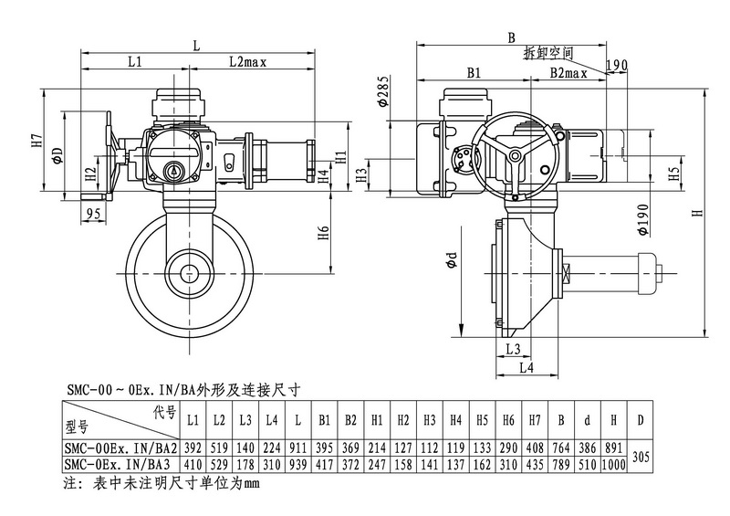 SMC/BA系列電動裝置是SMC系列中小轉(zhuǎn)矩多回轉(zhuǎn)電動裝置與BA圓錐齒輪減速器的一種組合型式,它適合閘閥、截止閥等多回轉(zhuǎn)閥門的驅(qū)動控制。SMC/BA電動裝置具有以下特點:以較小轉(zhuǎn)矩規(guī)格的SMC電動裝置與BA減速器組合可獲得更大的輸出轉(zhuǎn)矩。在輸出轉(zhuǎn)速允許的條件下,選用該產(chǎn)品能夠提高所選電動裝置規(guī)格的通用性,便于產(chǎn)品的使用、維護。