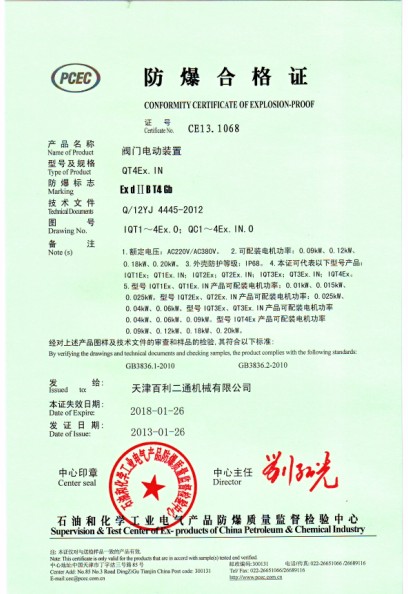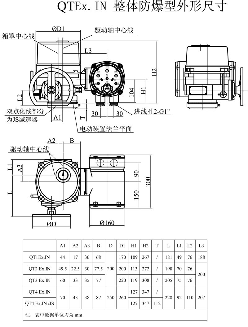 QT1~QT4型部分回轉(zhuǎn)閥門(mén)電動(dòng)裝置是我公司最新研制的換代型產(chǎn)品。適用于控制蝶閥、球閥、旋塞閥等做90°回轉(zhuǎn)的閥門(mén)。該產(chǎn)品替代同規(guī)格的QB系列產(chǎn)品,體積小、重量輕、具有高效率、高可靠性、高防護(hù)性能、低噪音等特點(diǎn)??涩F(xiàn)場(chǎng)操作,也可遠(yuǎn)距離控制。可廣泛用于石油、化工、發(fā)電廠(chǎng)、水處理、造紙等各行業(yè)。該產(chǎn)品的防護(hù)等級(jí)為IP67,隔爆型產(chǎn)品(型號(hào)中有Ex)的隔爆等級(jí)為dⅡBT4。