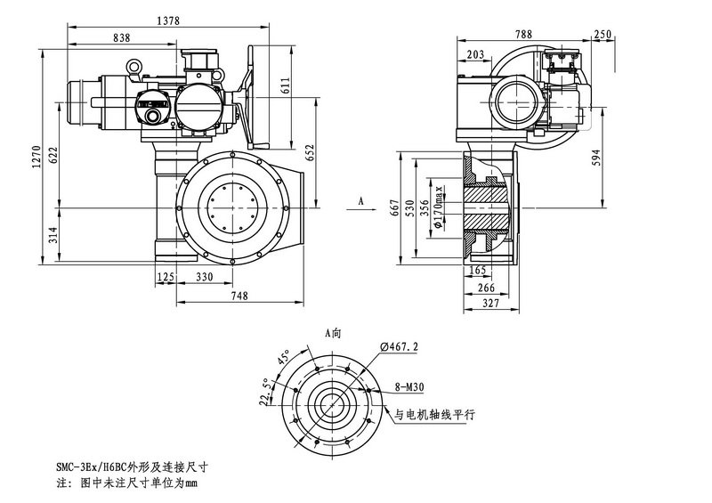 SMC/HBC系列電動(dòng)裝置是SMC系列多回轉(zhuǎn)電動(dòng)裝置與HBC蝸輪減速器的組合型式,它適合球閥、蝶閥等部分回轉(zhuǎn)閥門(mén)的驅(qū)動(dòng)控制。SMC/HBC電動(dòng)裝置具有以下特點(diǎn):結(jié)構(gòu)設(shè)計(jì)堅(jiān)固可靠,產(chǎn)品規(guī)格齊全,驅(qū)動(dòng)轉(zhuǎn)矩范圍大且動(dòng)力輸出穩(wěn)定, 具有良好的自鎖性能。 HBC輸出軸結(jié)構(gòu)獨(dú)特,裝有與閥桿連接的漸開(kāi)線花鍵接頭,產(chǎn)品的安裝調(diào)試方便。