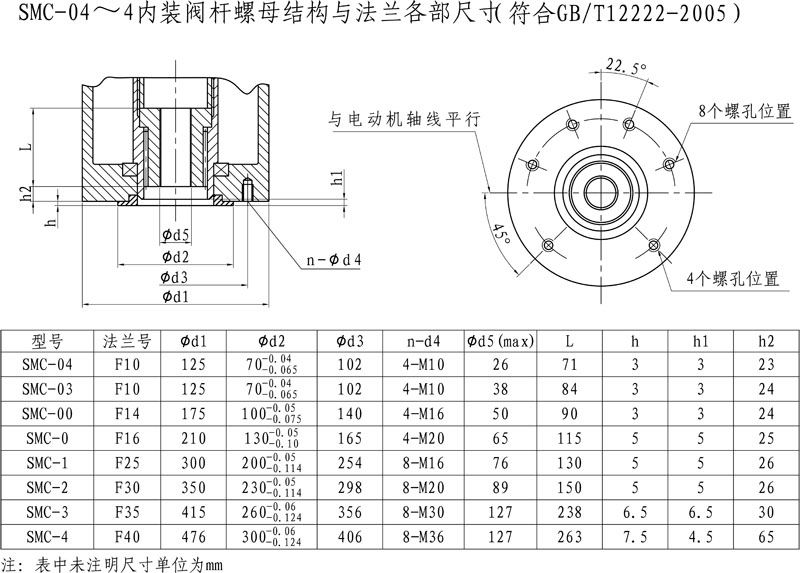 SMC-04~4內(nèi)裝閥桿螺母結(jié)構(gòu)與法蘭各部尺寸