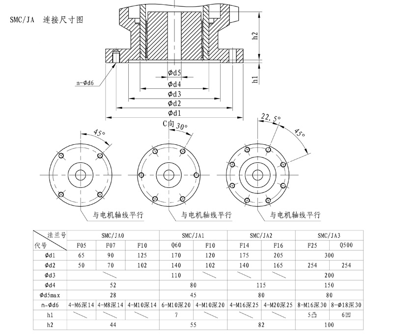 SMC-JA產(chǎn)品連接尺寸