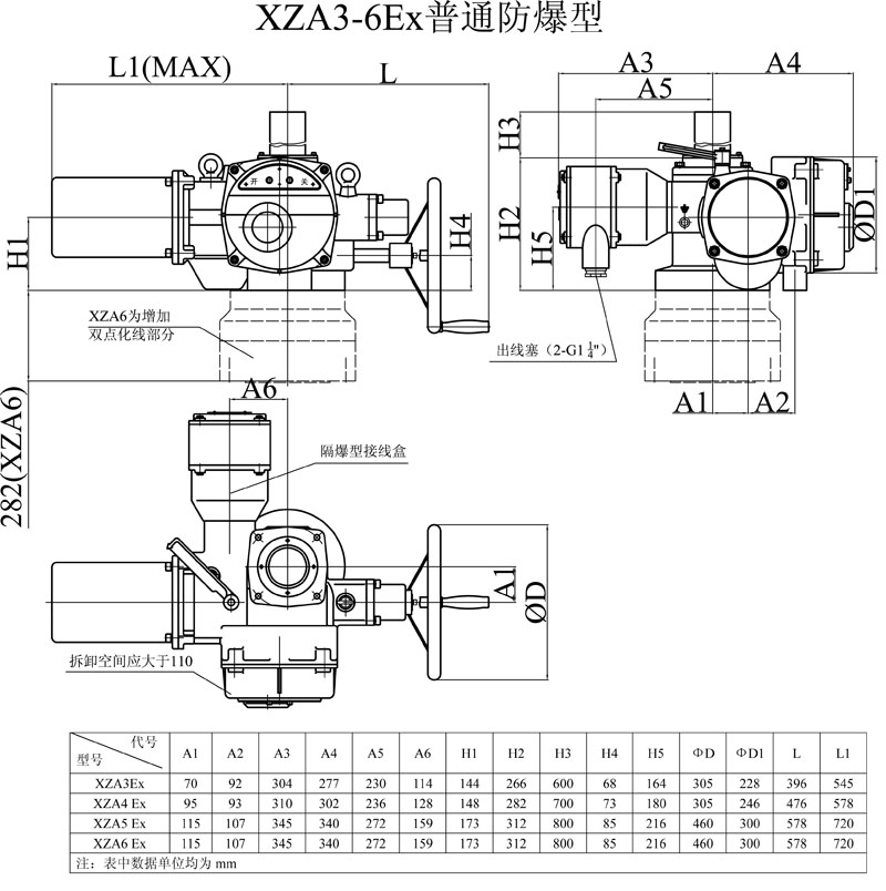 XZA系列普通型隔爆型多回轉(zhuǎn)閥門(mén)電動(dòng)裝置用于驅(qū)動(dòng)控制開(kāi)關(guān)過(guò)程中閥瓣作直線運(yùn)動(dòng)的閘閥、截止閥及隔膜閥等類(lèi)型的閥門(mén)。當(dāng)本系列電動(dòng)裝置與各類(lèi)形式的(蝸輪、行星齒輪、撥叉滑塊等)二級(jí)減速機(jī)構(gòu)組合后可成為用于驅(qū)動(dòng)控制開(kāi)關(guān)過(guò)程中閥瓣作旋轉(zhuǎn)運(yùn)動(dòng)的球閥、蝶閥及旋塞閥等類(lèi)型的閥門(mén)。